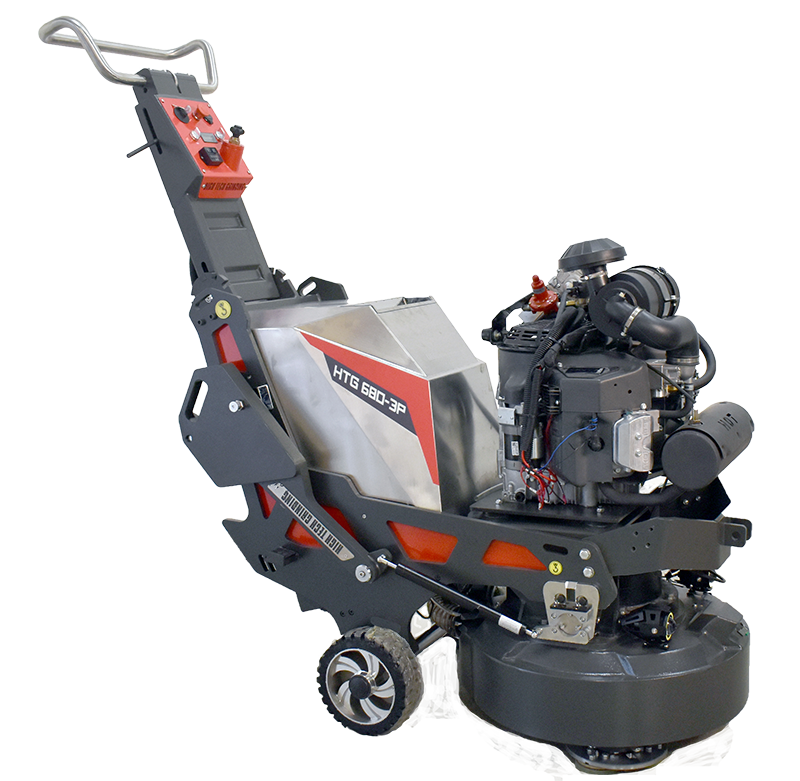The HTG-680P is a 27″, gear driven, planetary grinder. Lighter than the 800P but still capable of polishing concrete or surface preparation. The 680P is powered by a 27HP vapor propane engine