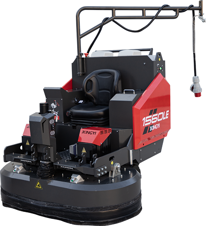 The new Tank-1560 LE is a ride on / remote control planetary grinder. Designed for large projects, and high production. Unlike the Tank-1500, it does not have an onboard vacuumn system. It is set up for a tow behind vacuumn system (not included). The grinding pass is 61.5 inches, giving high production performance. It also has a hydrallic liftiing system for changing tooling